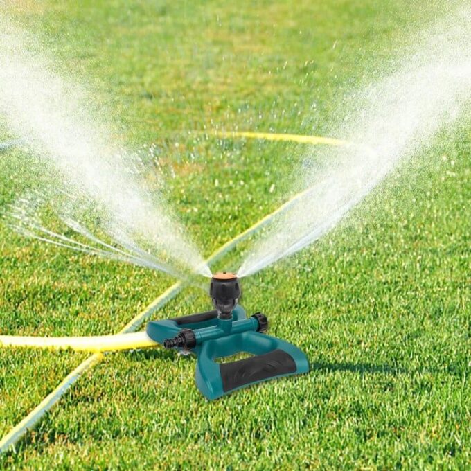 - Gran área de pulverización: este aspersor de agua para césped tiene tres cabezales de rociadores de alta calidad que pueden rociar 360 grados sin puntos ciegos en todas las direcciones, ampliando el área de pulverización.