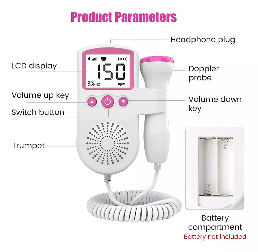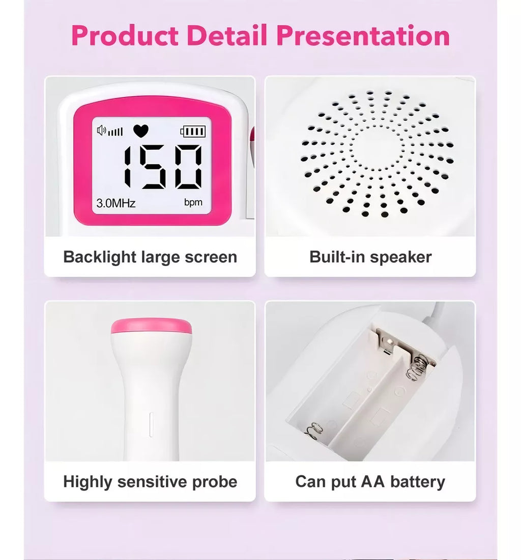 Su pantalla LCD muestra con nitidez la frecuencia cardíaca fetal. Nada de números confusos ni complicaciones: todo está diseñado para que cualquier persona lo use sin problemas.