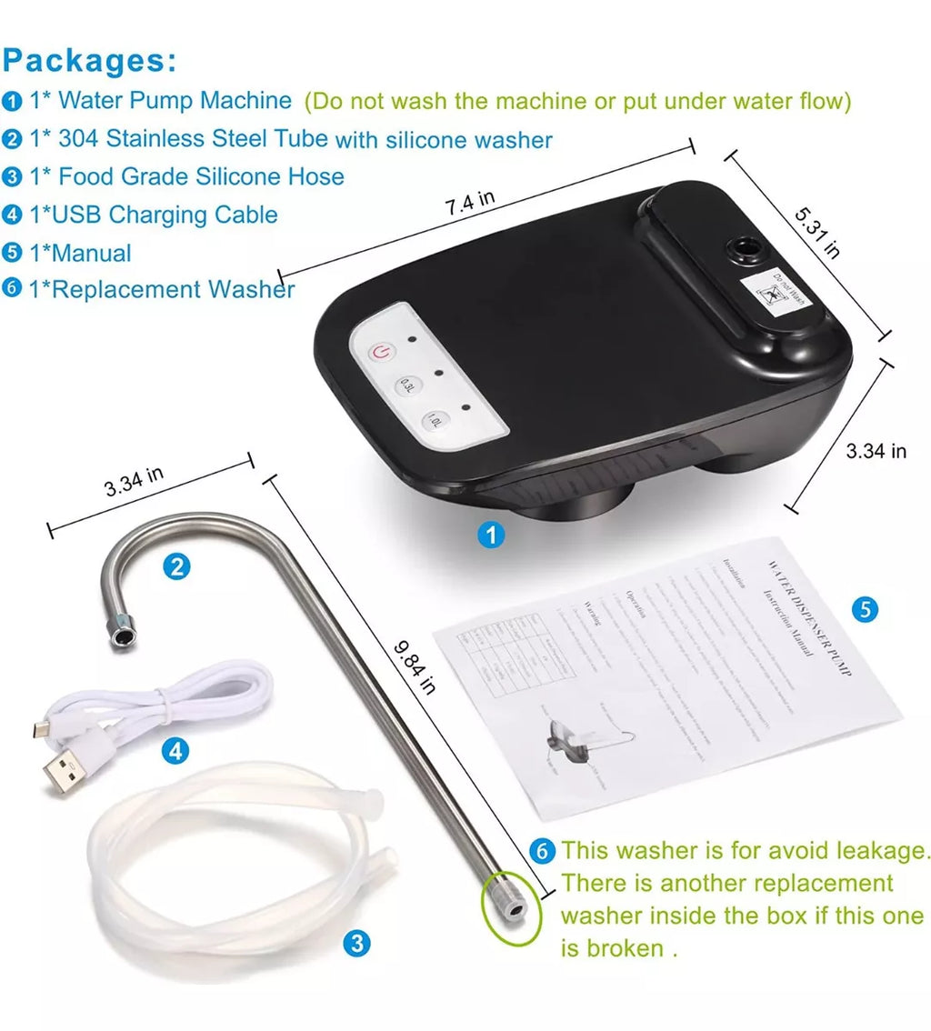 A mí me pasaba todo el tiempo. Entre lo pesado que es el botellón, lo incómodo que es alinear la boquilla con el vaso y el riesgo constante de derrame… ya prefería seguir con sed. Hasta que conocí esta bomba dispensadora. Pequeña, recargable, sin esfuerzo, y lo mejor: solo aprietas un botón y el agua sale. Literalmente me siento en un hotel, con vaso servido y manos libres.