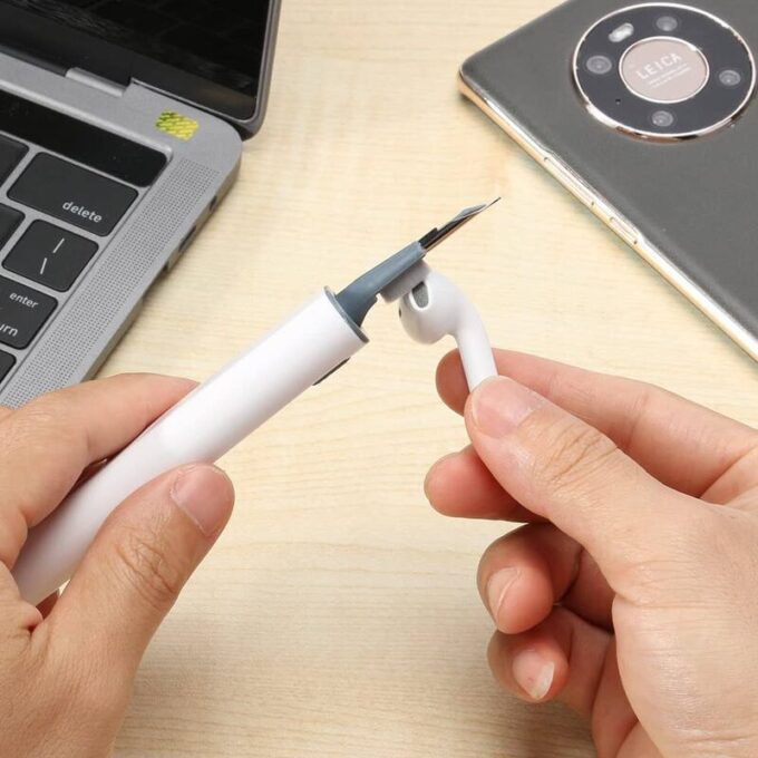 - Kit de limpieza multifuncional: este bolígrafo de limpieza no solo puede limpiar los auriculares, sino también el estuche de carga de los auriculares, los auriculares del teléfono móvil, el micrófono, el teclado, etc.