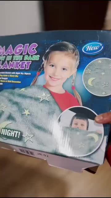 La magia de esta manta sucede bajo la oscuridad. Tendrás que exponer la manta a la luz solas para que en la oscuridad sus luces fluorescentes o LED puedan apreciarse mucho mejor. Brillará durante aproximadamente 30 minutos.