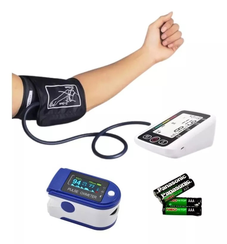 Este combo completo incluye un tensiómetro digital de brazo con función de voz, un oxímetro de pulso, y pilas incluidas para que empieces a usarlo de inmediato. Ideal para personas mayores, pacientes crónicos o cualquier persona que desee monitorear su presión arterial y oxigenación sin salir de casa.