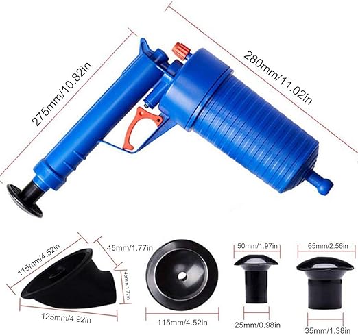 (3) el “enchufe” presiona firmemente contra la salida, de modo que se cierre, luego apriete rápidamente el gatillo, golpee el flujo de aire, la tubería en el enchufe debe alejarse. Se puede repetir la operación de esta acción hasta la confirmación final del flujo de la tubería, si el inodoro y la tubería sin agua, se puede agregar un poco de agua caliente a la expansión y contracción térmica de la tubería, para luego operar.