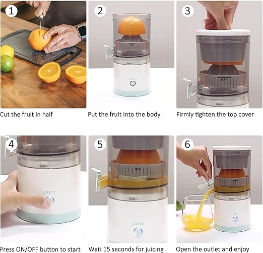 Diseño inalámbrico y portátil: el exprimidor eléctrico de cítricos utiliza tecnología USB-C para cargar. Lleva nuestro exprimidor inalámbrico de cítricos al campamento al aire libre y no te preocupes por quedarte sin energía. Disfruta de un delicioso jugo en cualquier momento y en cualquier lugar con un solo clic