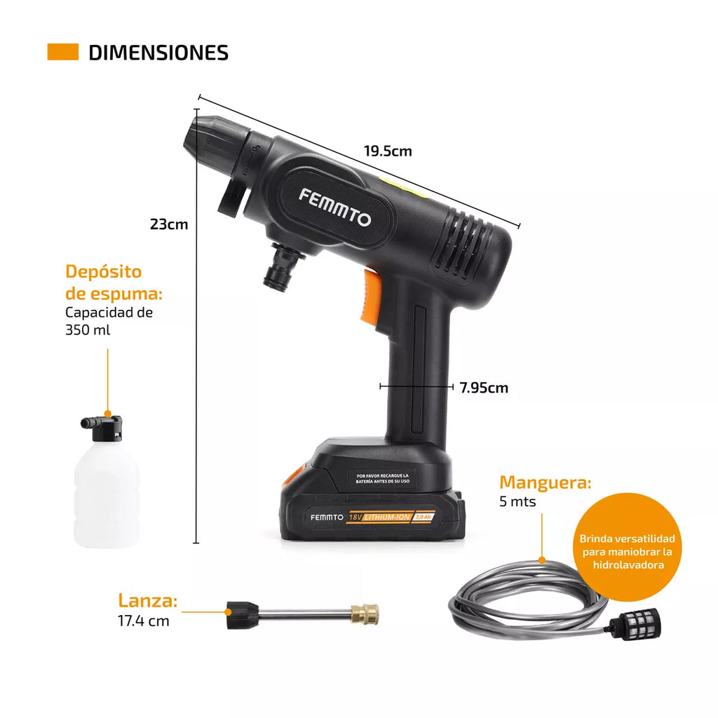 Perfecta hidrolavadora portátil para lavar tu carro moto o jardín, su gran presión hará que la suciedad se vaya al instante.