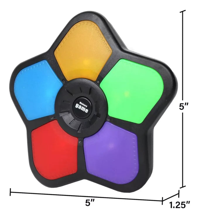 Este Juego de Memoria con Iluminación y Sonidos es un juguete portátil y educativo que desafía a los jugadores a seguir secuencias de luces y sonidos, ayudando a mejorar la memoria, la coordinación y la concentración. Con su diseño compacto y ligero en forma de estrella, este juego clásico es perfecto para niños, adolescentes y adultos, permitiendo sesiones de entretenimiento en casa o en cualquier lugar. Ofrece un juego interactivo que se puede disfrutar en solitario o con amigos, proporcionando horas de diversión y ejercicio mental.