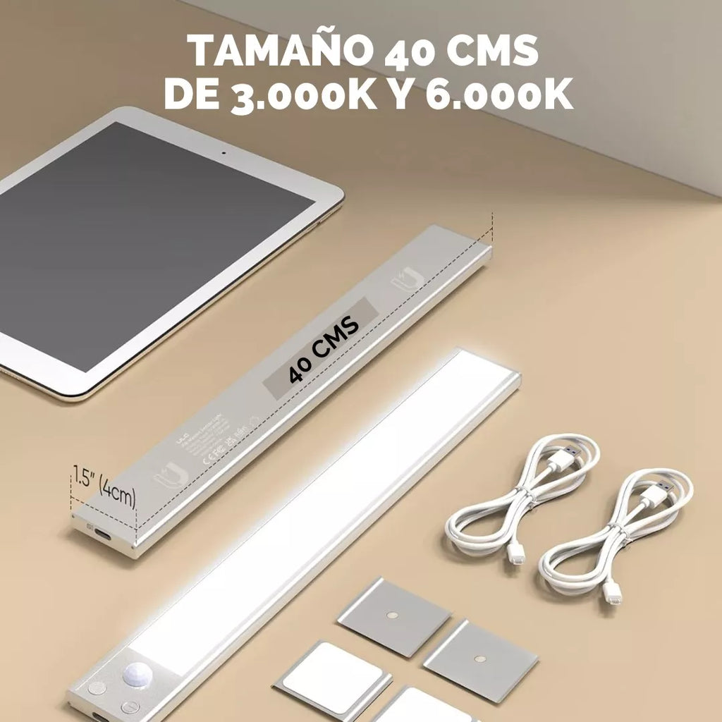 Ilumina tus espacios de forma automática y práctica. Esta barra LED recargable es ideal para armarios, cajones, cocinas, dormitorios y más.
