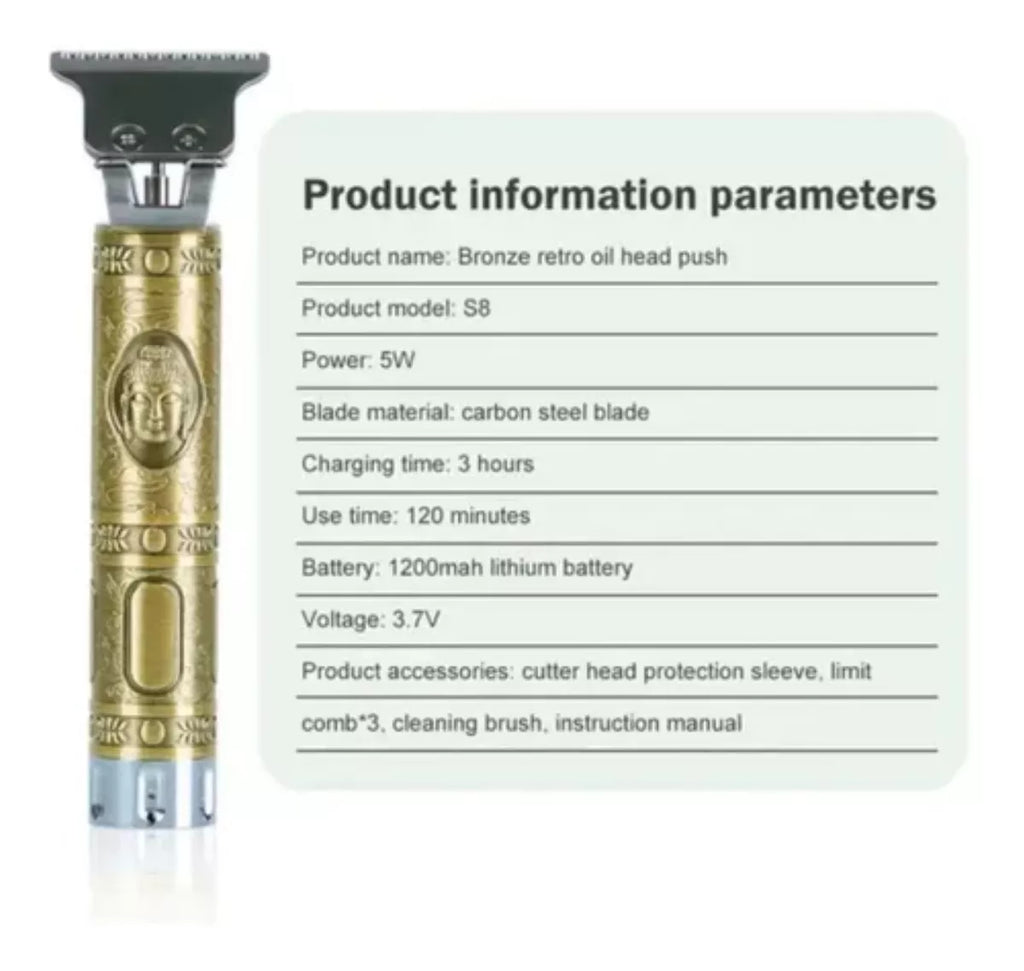 -Incluye: 4 peines guía, cepillo limpiador, cable de carga