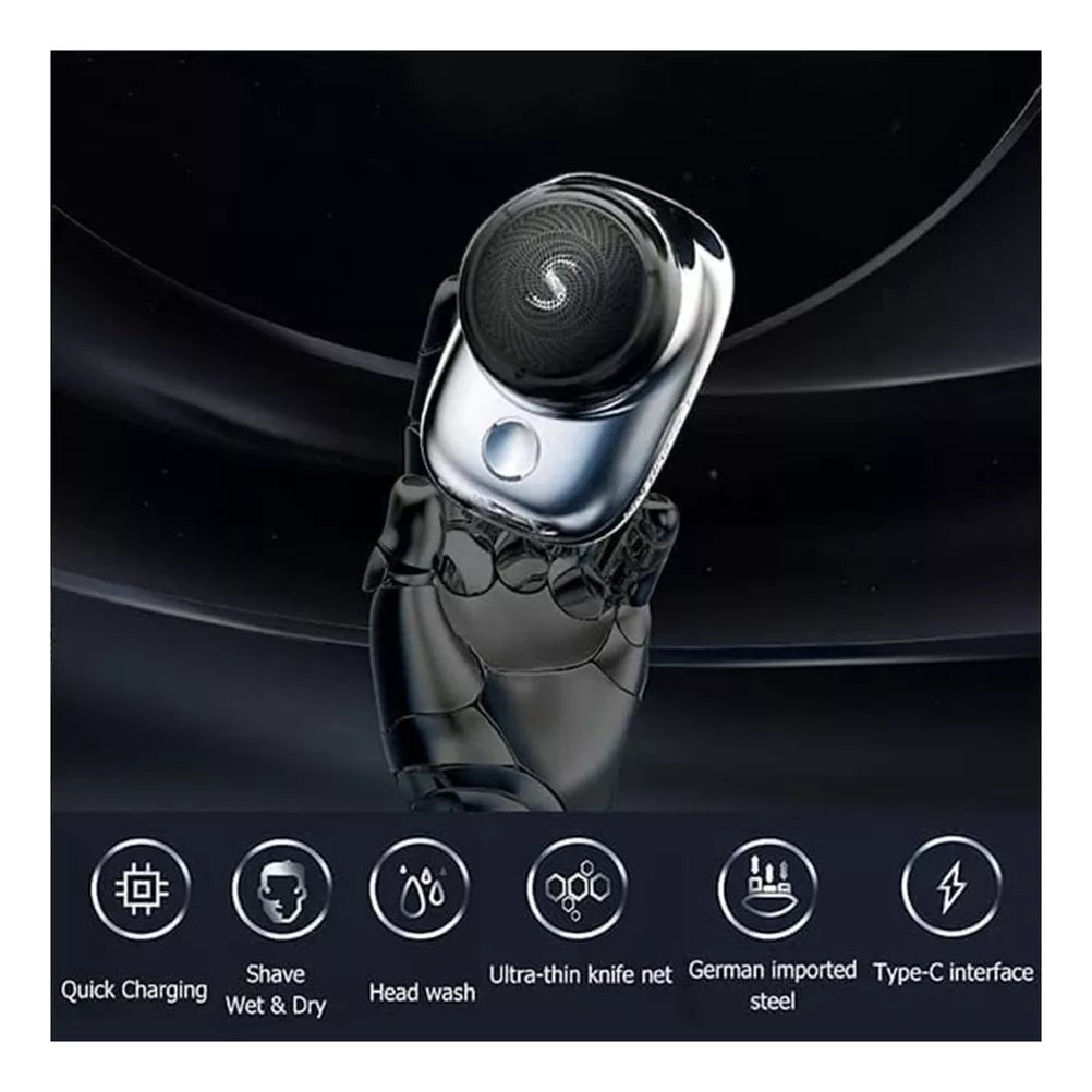 Con esta mini afeitadora eléctrica portátil, tendrás la potencia de una máquina profesional en la palma de tu mano. Gracias a su diseño de bolsillo, cuchillas turbo y carga USB, podrás afeitarte con rapidez, suavidad y precisión en cualquier lugar. Ideal para el trabajo, el carro o incluso durante un viaje en avión.