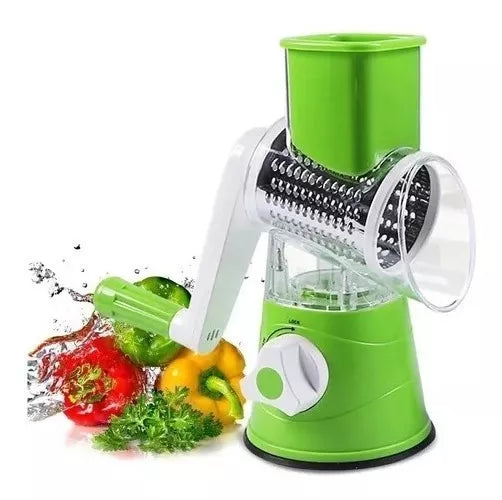 Haz tus preparaciones más rápidas y divertidas con este molino rallador 3 en 1. Ideal para cortar, rallar y picar verduras, frutas, quesos, frutos secos y más, sin esfuerzo ni electricidad.