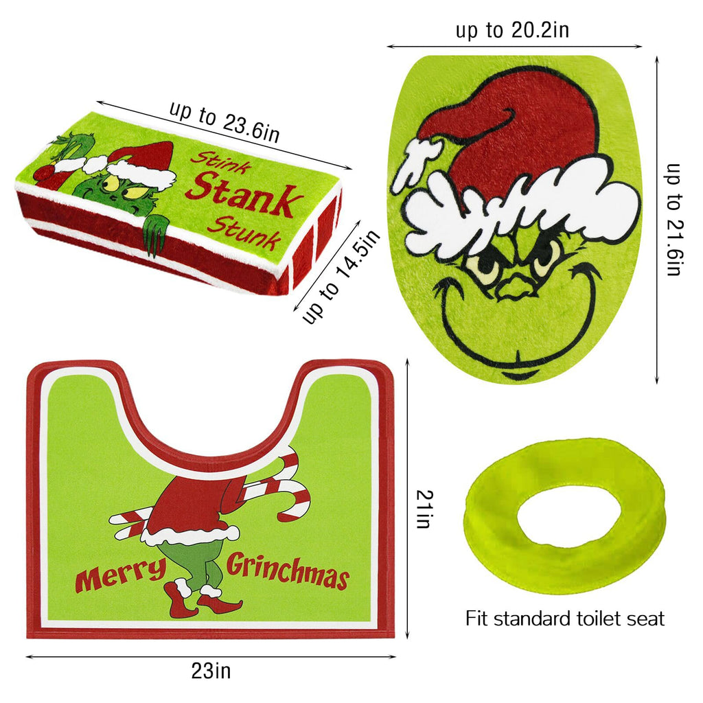Paquete de 4 decoraciones de baño – Decoración navideña para tapa de inodoro, cubierta de tanque, alfombra en forma de U y almohadilla de asiento para el hogar