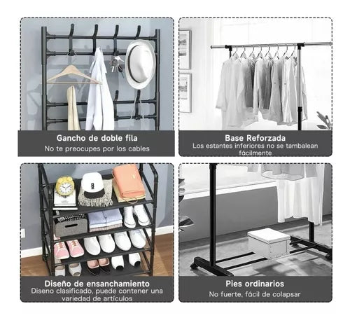 Organizador Multiusos con Tendedero + Zapatero + Estante Superior