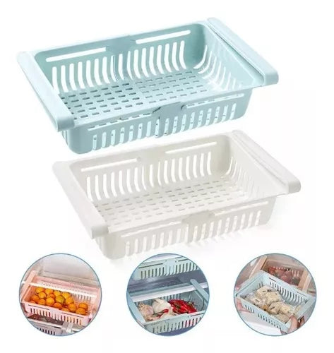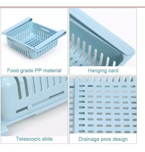 Cajas de almacenamiento estirables cajones estantes divididos alimentos, fruta, huevos. Organización del hogar. Organizador para refrigerador de cocina, cestas de plástico, rejilla de almacenamiento para alimentos, contenedor extraíble, cajón. Adecuado para conservas de bebidas, verduras, carnes, quesos, bolsas de verduras y otros alimentos en la nevera, accesorios de cocina y otros suministros. Se adapta a la mayoría de estantes de refrigerador de tamaño estándar. Mantén tus pertenencias ordenadas en lugar de tumbadas y ahorra espacio. diseño para proporcionar una superficie seca estable. Fácil de limpiar.