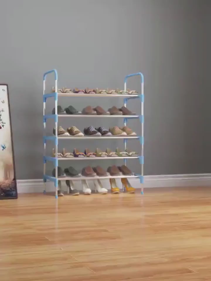 Organizador para zapatos de 6 niveles, con capacidad para alojar entre 12 y 18 pares de calzado de tallas para adulto y hasta 18 de tallas más pequeñas; su montaje es sencillo y rápido, ideal para mantener el orden en el closet y conservar los zapatos en óptimas condiciones.