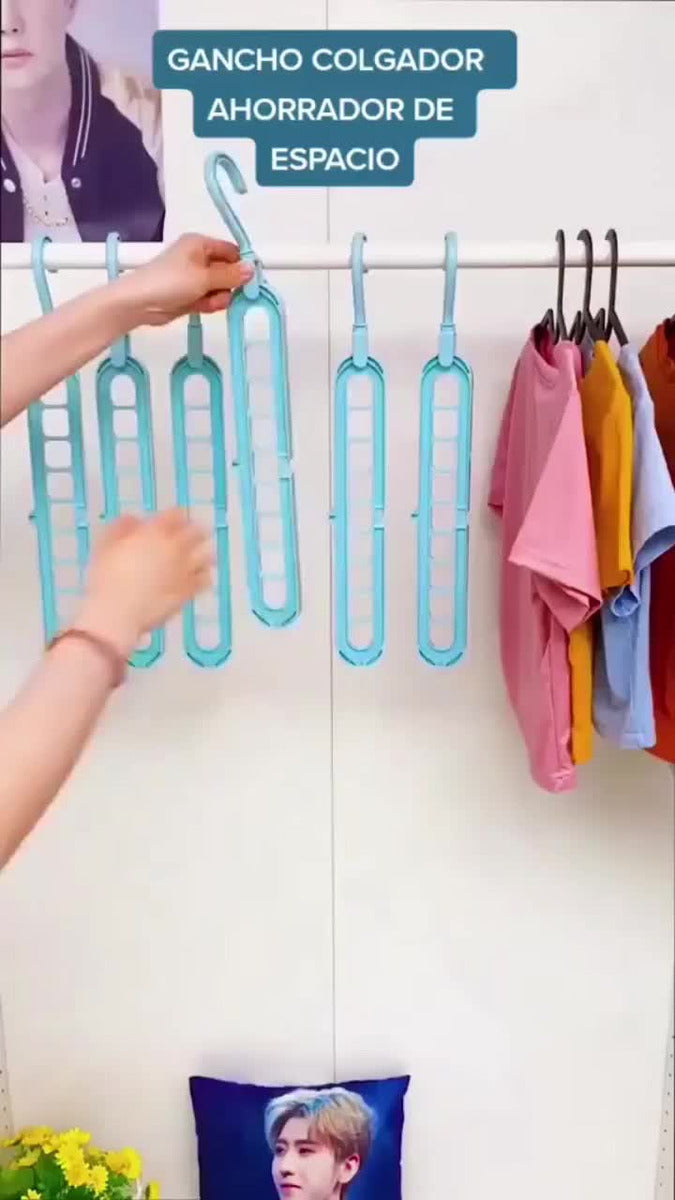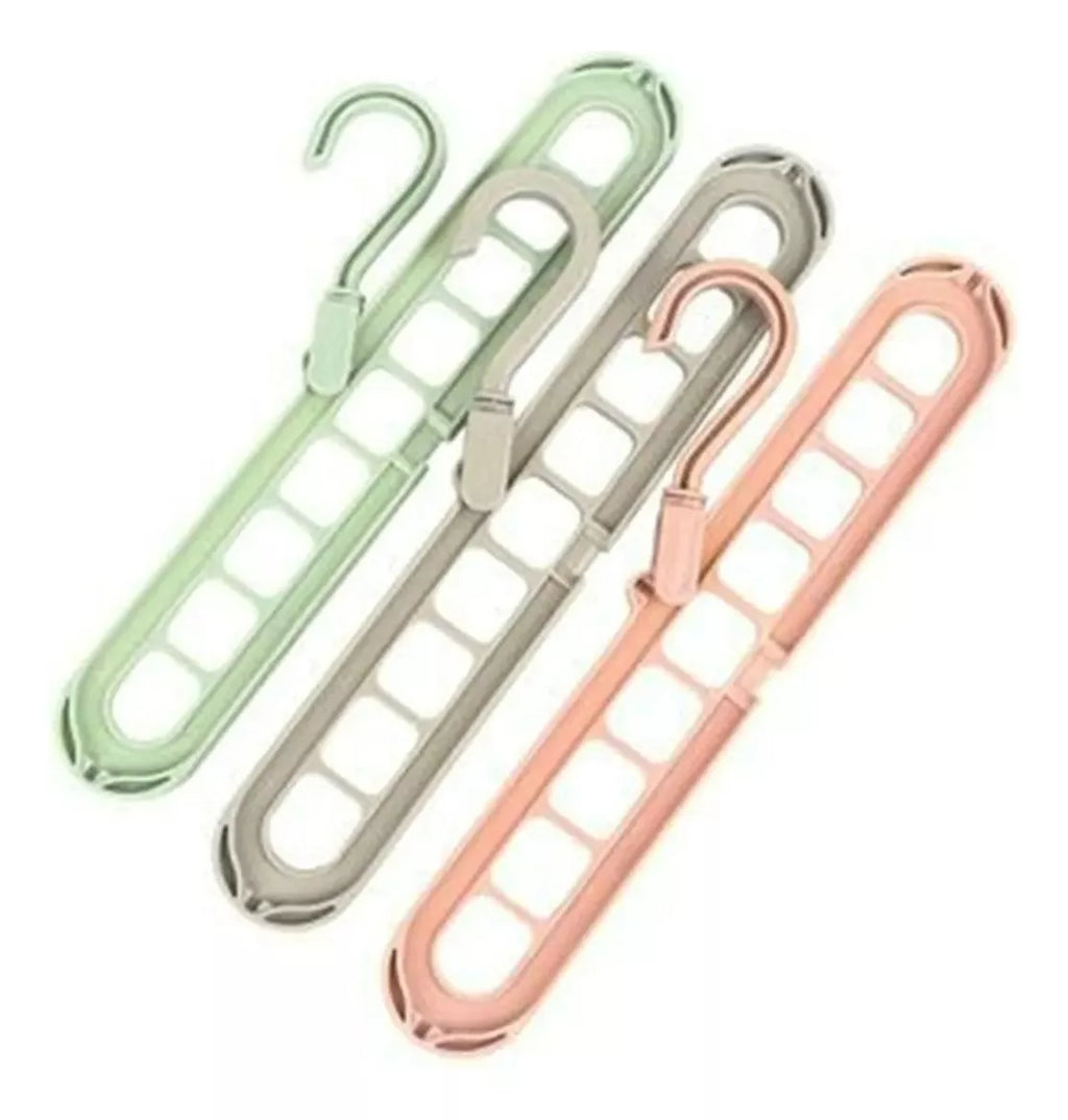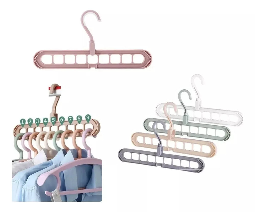- Este gancho múltiple puede ahorrar mucho espacio en tu armario. - Ideal para closets pequeños o cuando el espacio es limitado. - Mantiene tus camisas, pantalones y playeras organizadas y sin arrugas. - Juntas flexibles en ambos extremos para uso horizontal o vertical. - Material de plástico resistente con nueve orificios para colgar hasta nueve prendas por gancho. - Puede girar 360 grados para utilizarse horizontal o vertical dependiendo de tus necesidades. - Duradero, ahorro de espacio, fácil de usar.