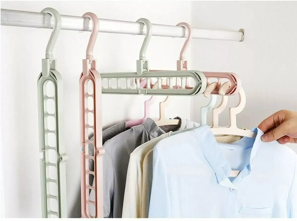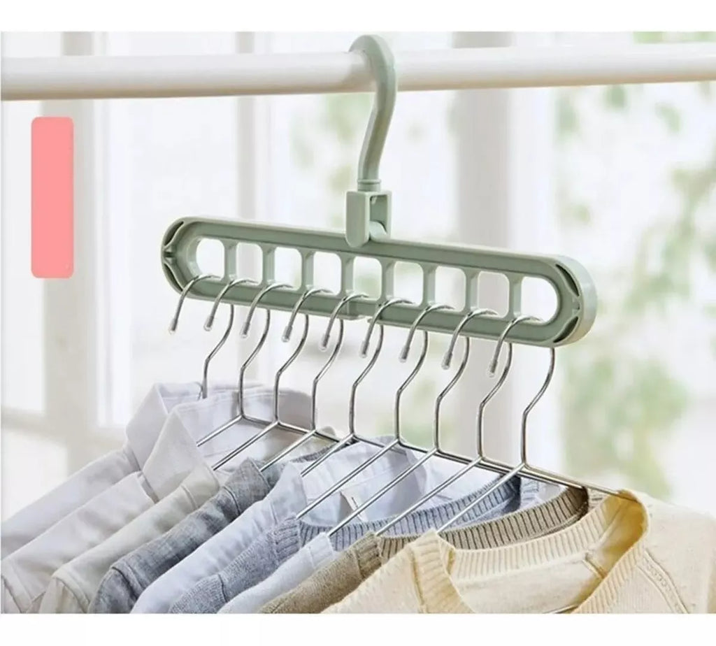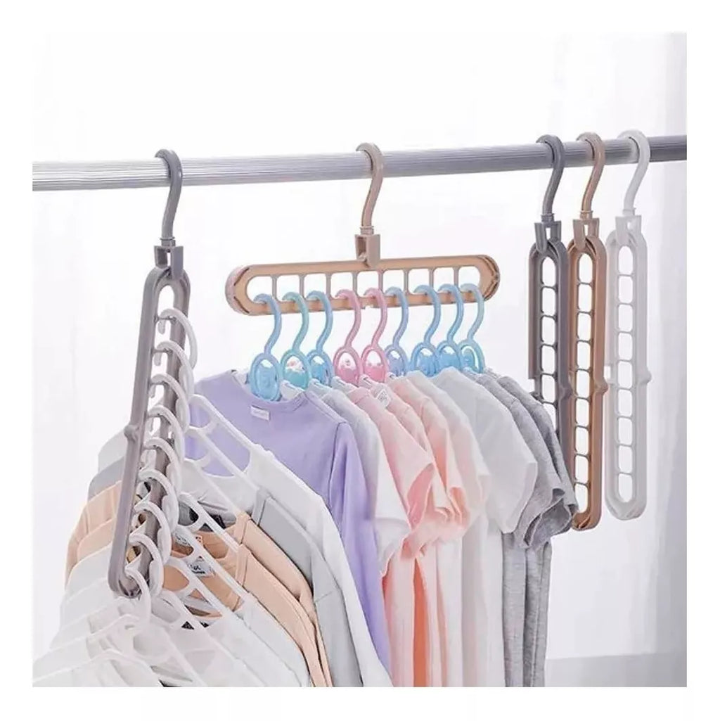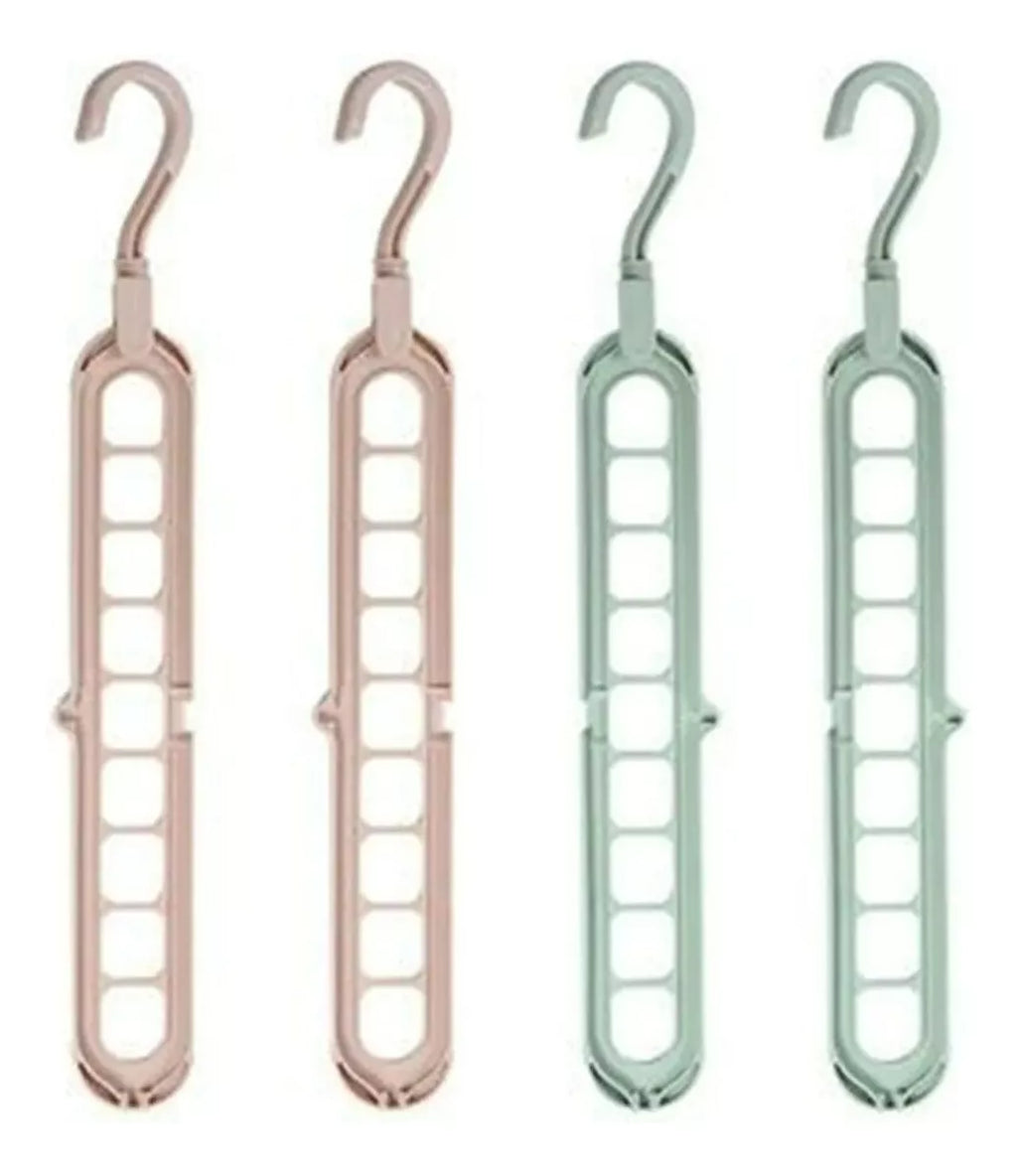 - Este gancho múltiple puede ahorrar mucho espacio en tu armario. - Ideal para closets pequeños o cuando el espacio es limitado. - Mantiene tus camisas, pantalones y playeras organizadas y sin arrugas. - Juntas flexibles en ambos extremos para uso horizontal o vertical. - Material de plástico resistente con nueve orificios para colgar hasta nueve prendas por gancho. - Puede girar 360 grados para utilizarse horizontal o vertical dependiendo de tus necesidades. - Duradero, ahorro de espacio, fácil de usar.