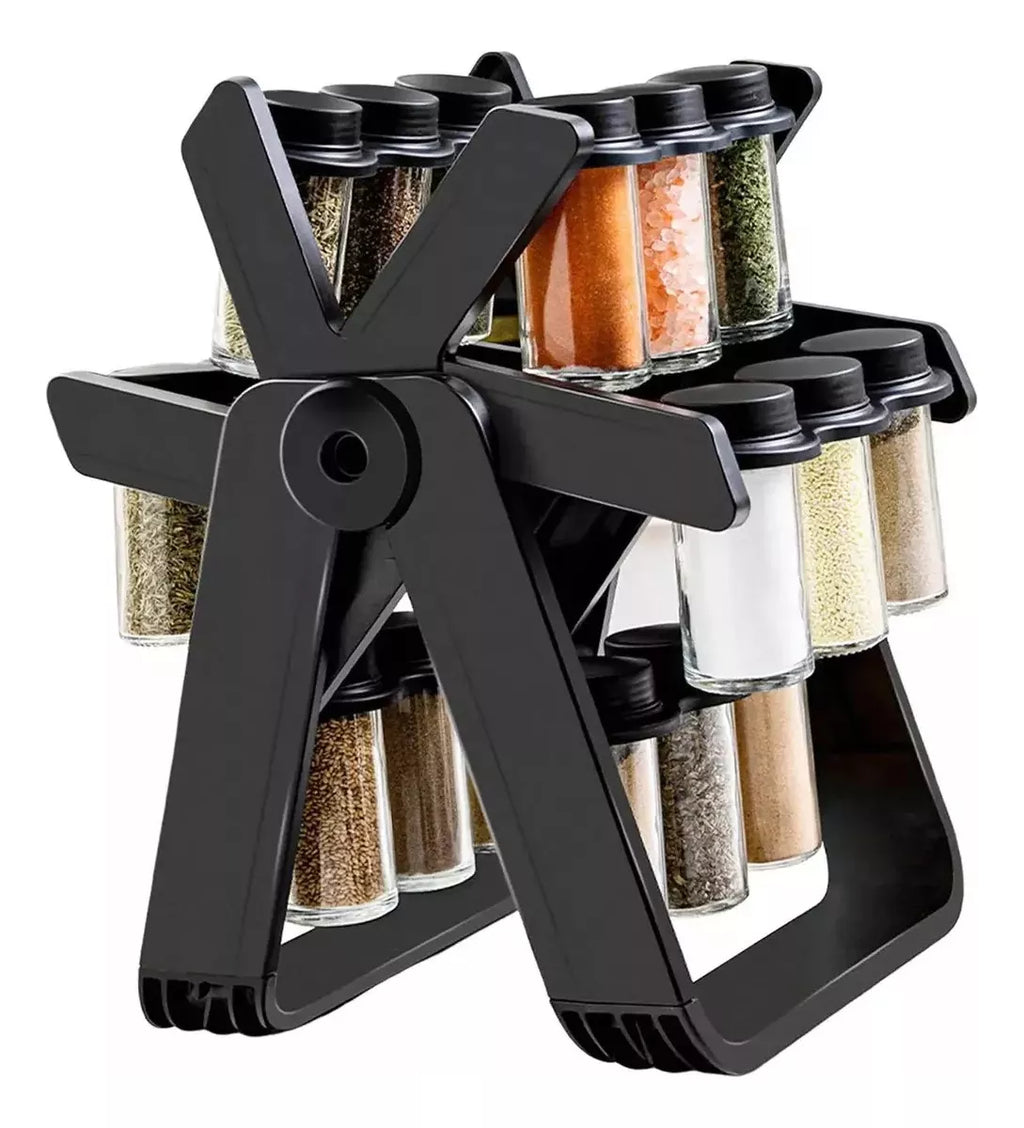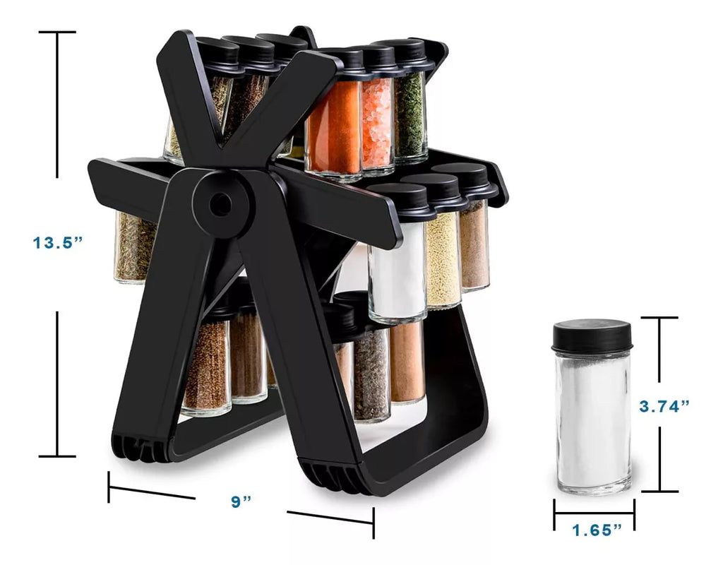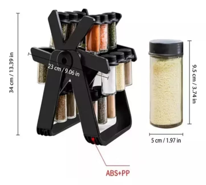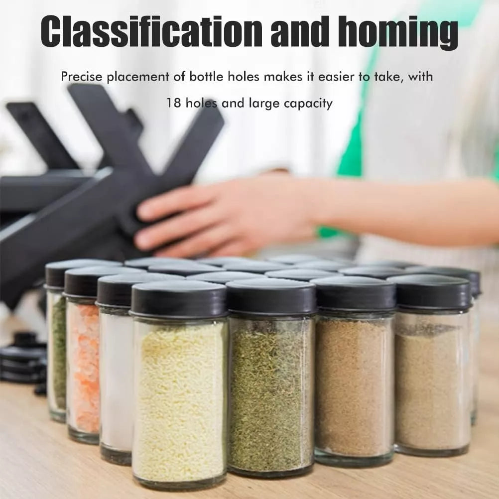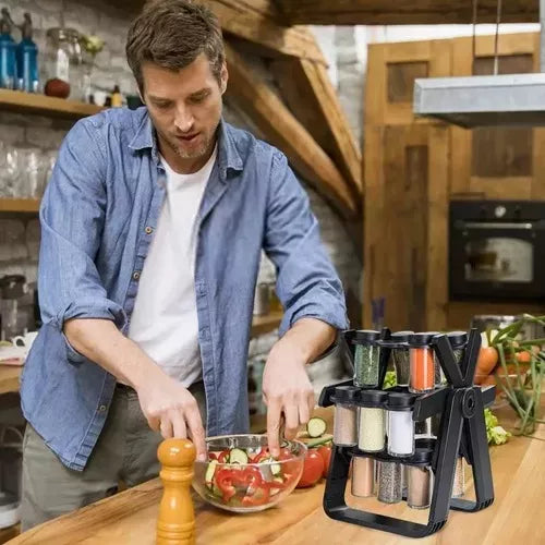 Características: - Optimiza el espacio en la cocina manteniendo la encimera organizada. - Diseño giratorio de 360 grados para un acceso fácil y rápido a cada tarro de especias. - Fabricado con materiales de calidad alimentaria para asegurar la seguridad y confiabilidad. - Capacidad para 18 tarros de especias, ofreciendo amplio espacio de almacenamiento. - Estructura estable y duradera, ideal para uso en cocina, despensa, etc.