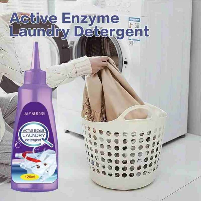 Sus enzimas activas descomponen las manchas a nivel molecular, convirtiéndolas en una solución soluble en agua que desaparece fácilmente al enjuagar.