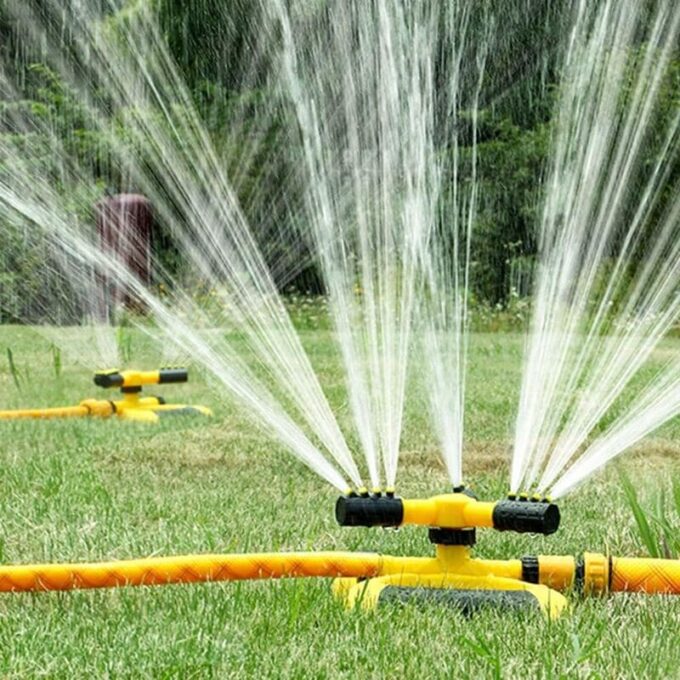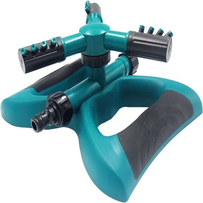 - Gran área de pulverización: este aspersor de agua para césped tiene tres cabezales de rociadores de alta calidad que pueden rociar 360 grados sin puntos ciegos en todas las direcciones.