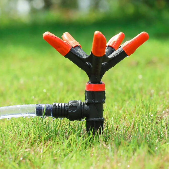 - Rociador giratorio automático de 360°, para crear un rocío de agua fino, uniforme y similar a la lluvia para un riego científicamente eficiente.