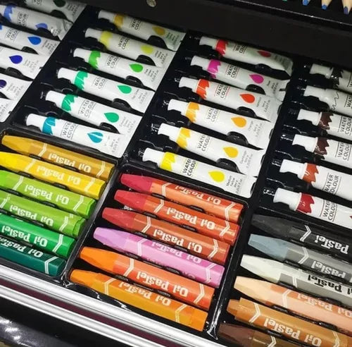 El set de artista Premium de 145 piezas es una caja de arte plegable de metal profesional de alta calidad que contiene todo lo necesario para pintar y dibujar