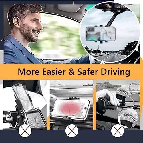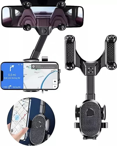 Soporte para Celular en Espejo Retrovisor – Rotación 360°, Estable y Práctico 🔄🔒