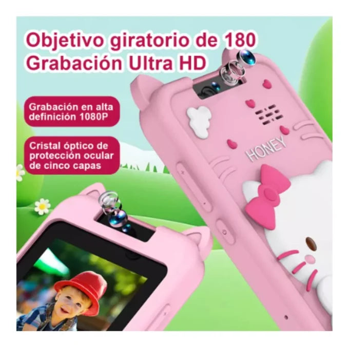 Innovador diseño de cámara giratoria: el teléfono de juguete está equipado con una cámara que puede girar hacia adelante y hacia atrás, lo que permite a los niños cambiar fácilmente entre los modos de cámara trasera y selfie, lo que hace que capturar momentos en ambas direcciones sea simple y divertido. Multifuncional con funciones avanzadas: además de funciones básicas de fotografía y vídeo, el teléfono de juguete también admite la visualización de galerías, la reproducción de vídeo y la reproducción de música MP3, e incluye funciones integradas como una alarma, calendario, calculadora y juegos educativos, que enriquecen el aprendizaje de los niños a través del juego. Pantalla de alta definición: el teléfono de juguete cuenta con una pantalla táctil IPS de 2,8 pulgadas con una resolución de 240 x 320, que proporciona una pantalla detallada con colores vibrantes para una experiencia visual de primera calidad para los niños. Compatibilidad multimedia: este teléfono de juguete admite la reproducción de vídeo en formato AVI con una resolución de hasta 1080P, formato de imagen JPG, fotos de alta resolución con 48 millones de píxeles y reproducción de música MP3, para satisfacer las diversas necesidades de entretenimiento de los niños. Grabación de sonido y vídeo: La miniatura El teléfono de juguete no solo graba vídeos de alta definición, sino que también captura sonido en formato WAV de primera calidad y admite la grabación en bucle, lo que permite a los niños documentar fácilmente su vida diaria. Especificación: teléfono de juguete. Material: ABS, función de silicona: fotos, grabación de vídeo (cámara delantera y trasera giratoria), visualización de álbumes de fotos, reproducción de vídeo, reproducción de MP3, despertador, calendario, calculadora, juegos de rompecabezas, etc. Pantalla: pantalla táctil IPS de 2,8 pulgadas, resolución de vídeo de 240 x 320: Formato de imagen 1080P